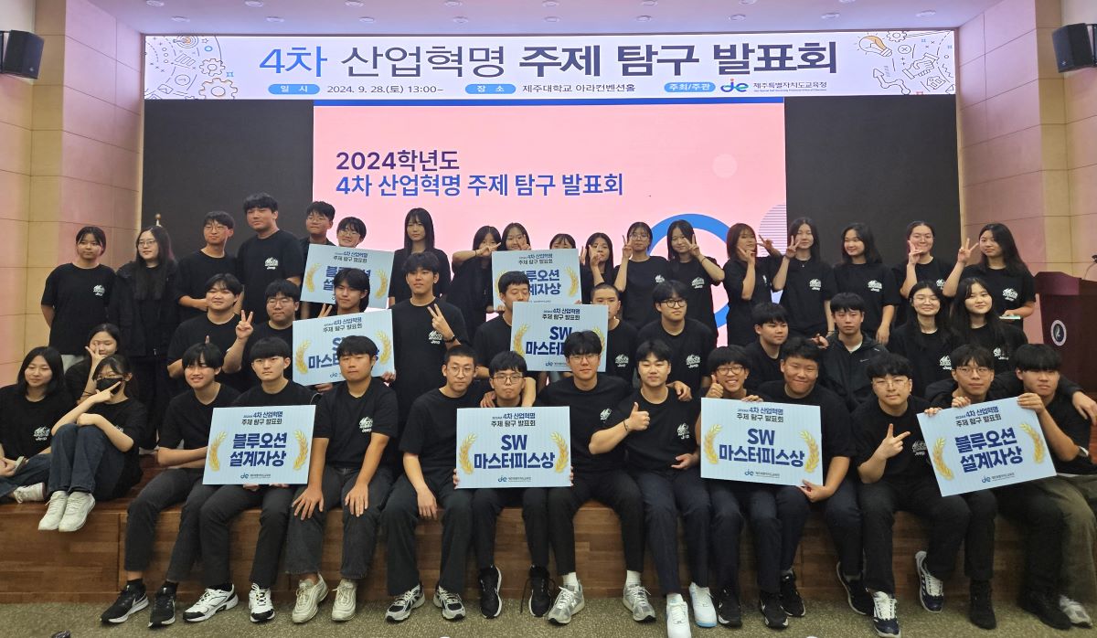 제주특별자치도교육청(교육감 김광수)은 지난달 28일 제주대학교 아라컨벤션홀에서 서귀포여고 등 도내 7개 고등학교 16팀 48명의 학생이 참여한 ‘2024년 4차 산업혁명 주제 탐구 발표회’를 개최했다고 밝혔다.