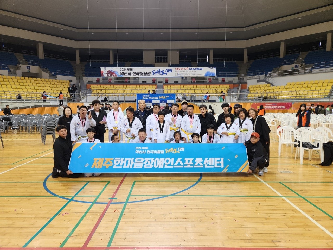 서귀포 한마음장애인스포츠센터(센터장 강누리) 선수단은 지난 19일 익산실내체육관에서 열린 ‘2024 제3회 익산시 전국 어울림 태권도대회‘에 참가해 전원 입상이라는 쾌거를 달성하였다. 이 대회는 익산시장애인체육회와 익산시장애인태권도협회가 주최했다.