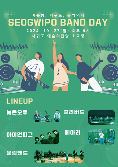오는 10월 27일 오후 6시 서귀포예술의전당 소극장에서 '서귀포 밴드데이' 공연이 개최된다.