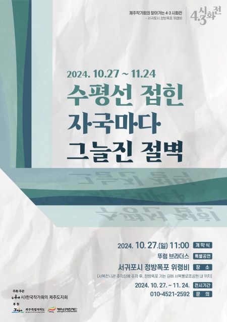 시화전 개막식은 오는 27일 오전 11시 서귀포시 서복전시관 주차장 옆에 마련된 정방폭포 4·3 위령비 공간에서 열린다. 뚜럼 브라더스가 특별출연해 노래로 추모하며, 김영숙 시인과 김혜연 시인이 추모 시를 낭독할 예정이다.