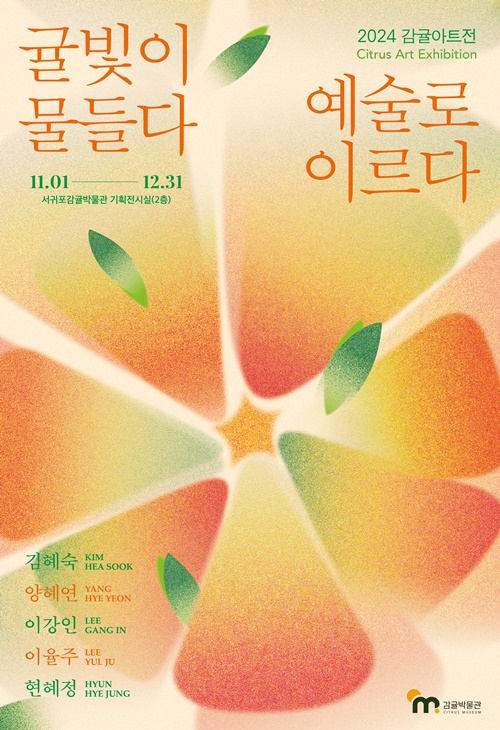 ‘2024 감귤아트전 귤빛이 물들다, 예술로 이르다’라는 타이틀로 오는 11월 1일 개최하는 이번 전시는 12월 31일까지 감귤박물관 기획전시실에서 진행된다.