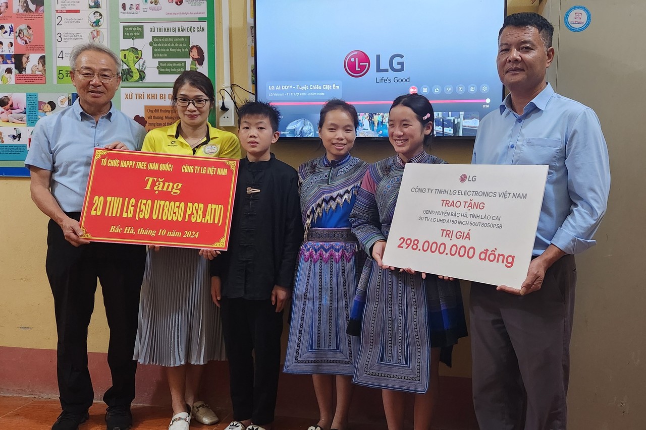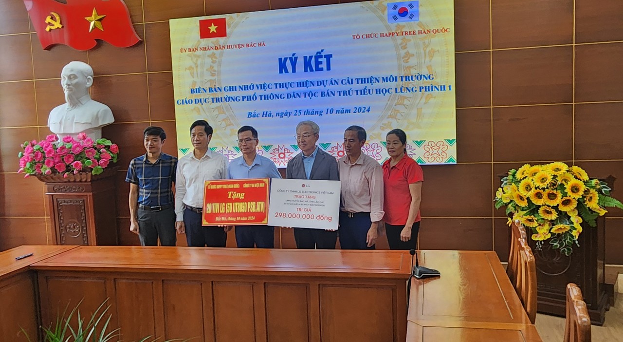 (사)해피트리(이사장 송형록)는 10월 25일 LG전자생산법인으로부터 지원받은 LG TV 20대를 베트남 최북단 국경지대에 위치한 라오까이성(Lao Cai) 박하현(BAC HA)에 소재한 소수민족 자녀들이 다니는 15개 초·중 복합 기숙학교에 기증했다.