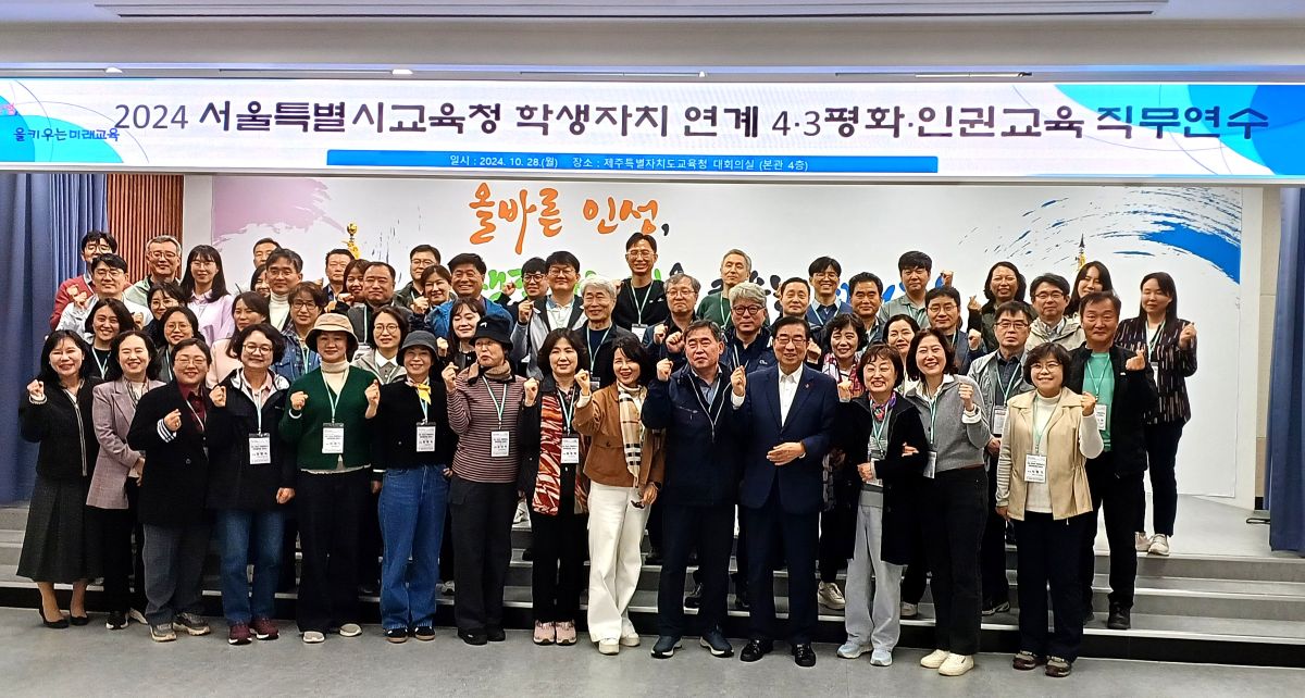 제주도교육청은 지난 28일부터 30일까지 서울특별시교육청 교원 및 교육청 관계자 63명을 대상으로 학생자치 연계 4·3평화·인권 교육 직무연수를 진행한다고 밝혔다.