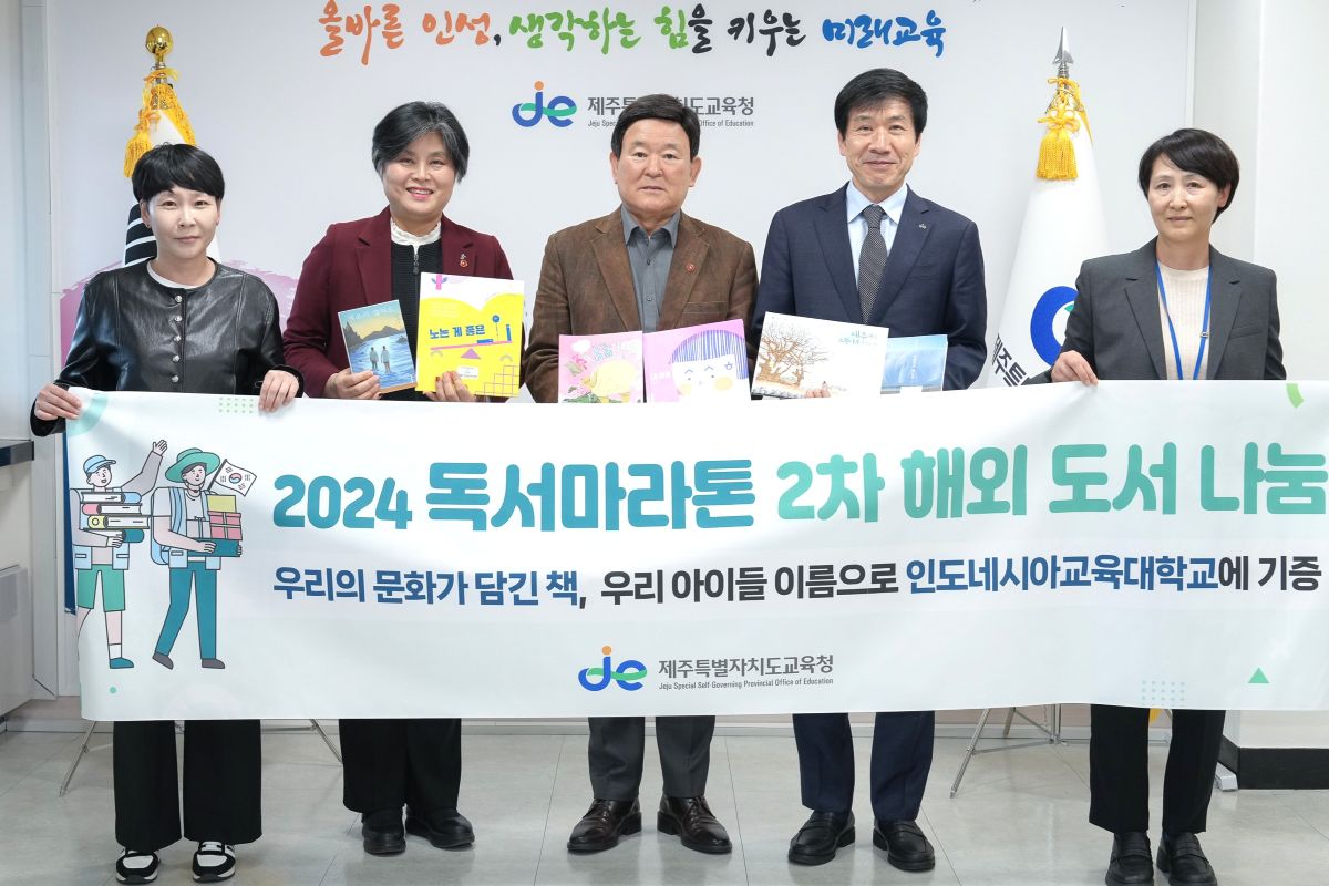 제주특별자치도교육청(교육감 김광수)은 6일 2024년 독서 마라톤 2차 인증 학생과 가족들이 추천한 도서 400권을 인도네시아교육대학교 (Universitas Pendidikan Indonesia) 한국어학과 및 한국학연구센터에 기증한다고 밝혔다.