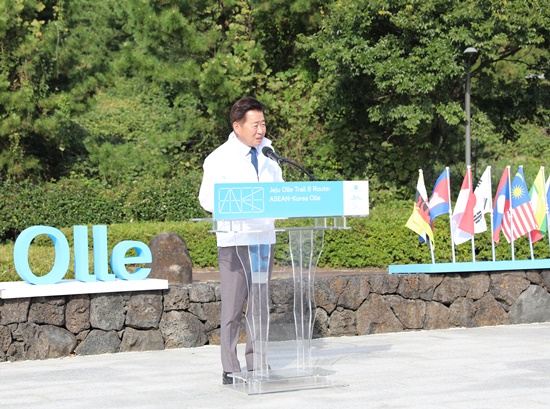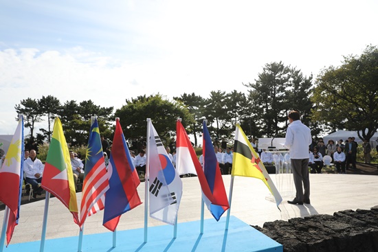 8일 서귀포시 주상절리 인근에서 열린 제막식에는 오영훈 제주도지사와 서명숙 제주올레재단 이사장, 오순문 서귀포시장, 김재신 한-아세안센터 사무총장을 비롯해 주한 필리핀대사와 아세안 각국 대사단이 참석했다.