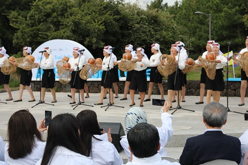 이 날 행사의 시작을 알린 하도해녀합창단의 축하 공연은 참석자들의 큰 호응을 얻었다.