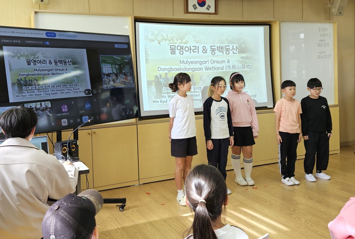 학생들은 한 해 동안 환경 생태동아리 활동 내용 중 지구의 날, 화전 및 우리 학교 주변 식물, 신례천과 한란 전시관, 물영아리 오름과 동백동산 습지, 신례 생태 식물도감 등의 내용을 선정하고, PPT 제작과 발표 내용 구성까지 학생들이 주도적으로 준비해 화상 수업이 진행됐다.
