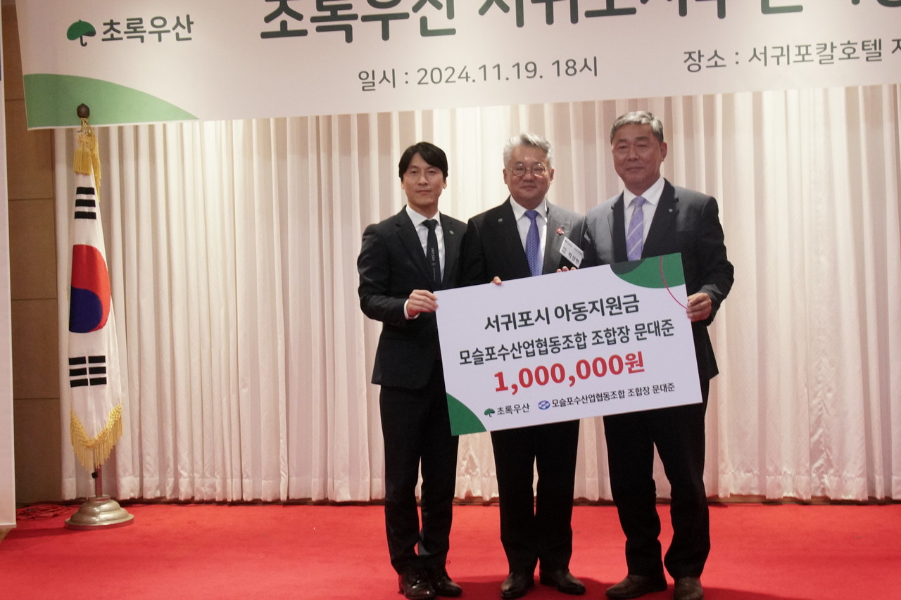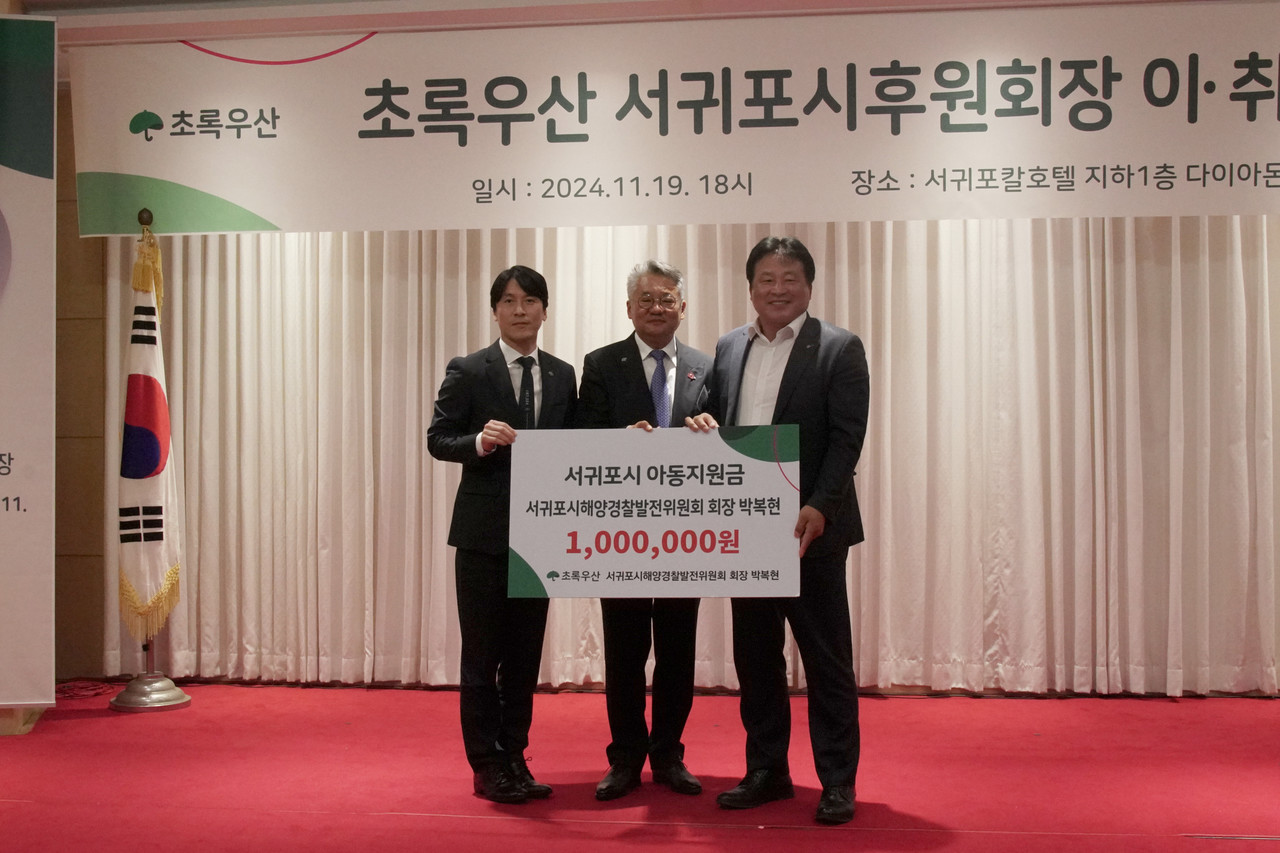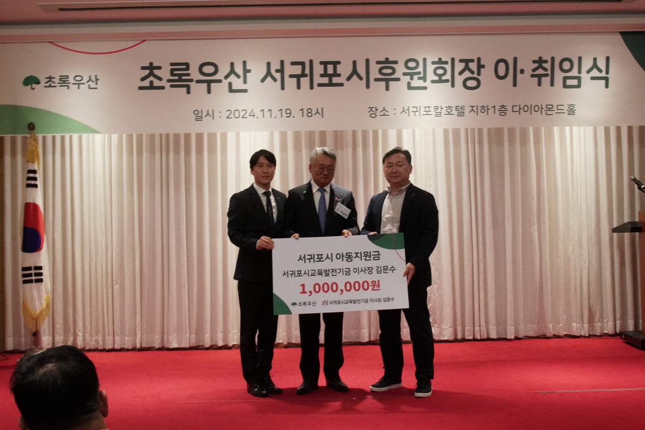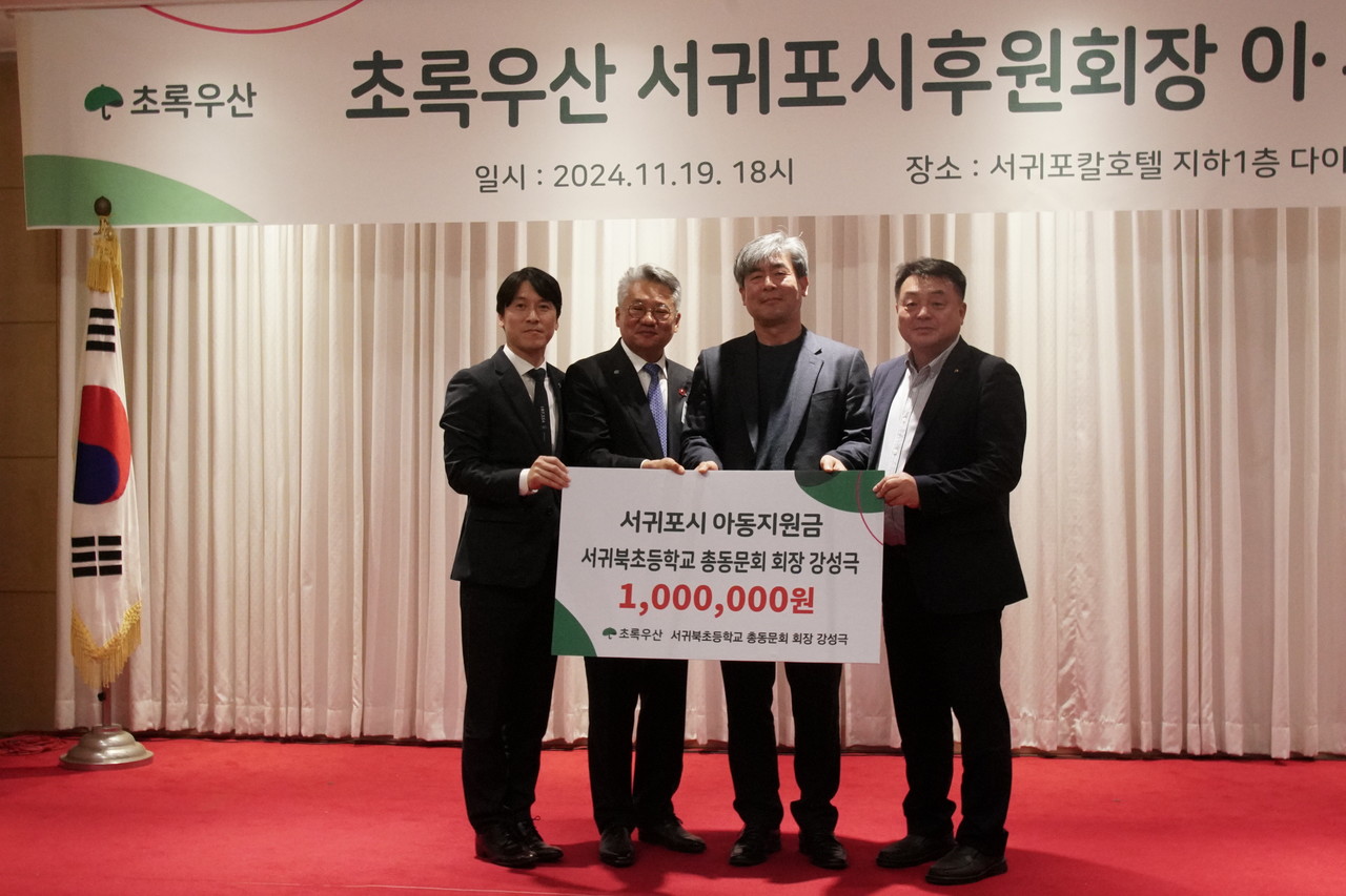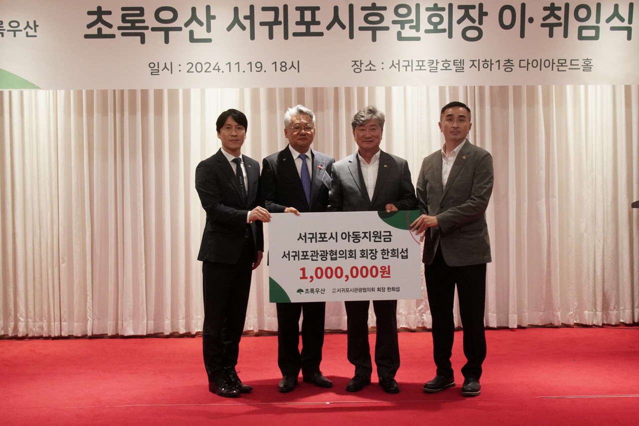 이날 초록우산 서귀포시후원회는 제주올레, 서귀포시교육발전기금, 초록우산 제주지역본부와 함께 나눔 협약식을 체결하고 서귀포시 후원자 발굴 및 아동 지원 확대를 위한 협력 의지를 다졌다. 특히 취임을 기념해 서귀포시내 주거 취약계층을 지원하기 위해 1119만 원의 후원금을 사전에 모금했다. 서귀포시교육발전기금, 서귀포관광협의회, 모슬포수협, 서귀포중학교 총동문회, 서귀북초등학교 총동문회, 서귀포해양경찰서 정책자문위원회, 2024 서귀포JC, 재서한림공고동문회 등에서 각각 100만 원을 기부하며 따뜻한 나눔을 실천했다.