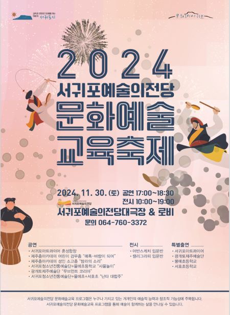 서귀포예술의전당은 오는 30일 오후 5시부터 대극장에서‘2024 문화예술교육축제’를 개최한다고 20일 밝혔다.