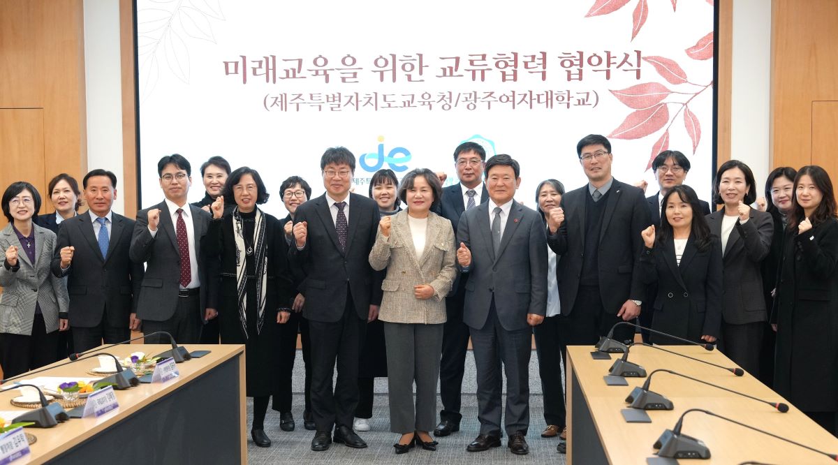 제주도교육청은 광주여자대학교와 지난 20일 광주여대 본관 3층 대회의실에서 업무협약을 체결하고 미래 교육을 위한 상호 협력을 약속했다고 밝혔다.