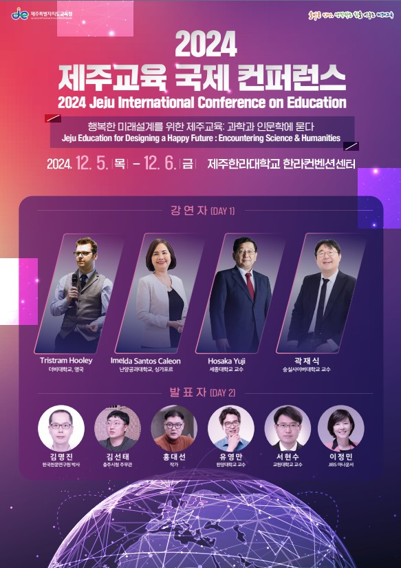 제주특별자치도교육청은 내달 5일과 6일 제주한라대학교 한라컨벤션센터에서 ‘행복한 미래 설계를 위한 제주교육: 과학과 인문학에 묻다’라는 주제로 2024 제주교육 국제 콘퍼런스를 개최한다고 21일 밝혔다.