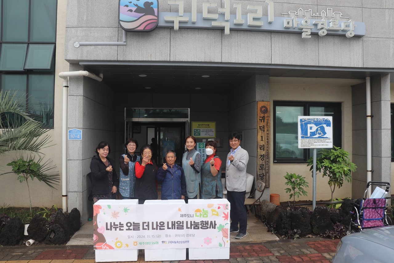제주양돈농협(조합장 고권진)은 지난 15일 귀덕1리 경로당(노인회장 고상옥)을 찾아 ‘나누는 오늘 더 나은 내일’ 나눔 행사를 개최하고 돼지고기를 전달했다.
