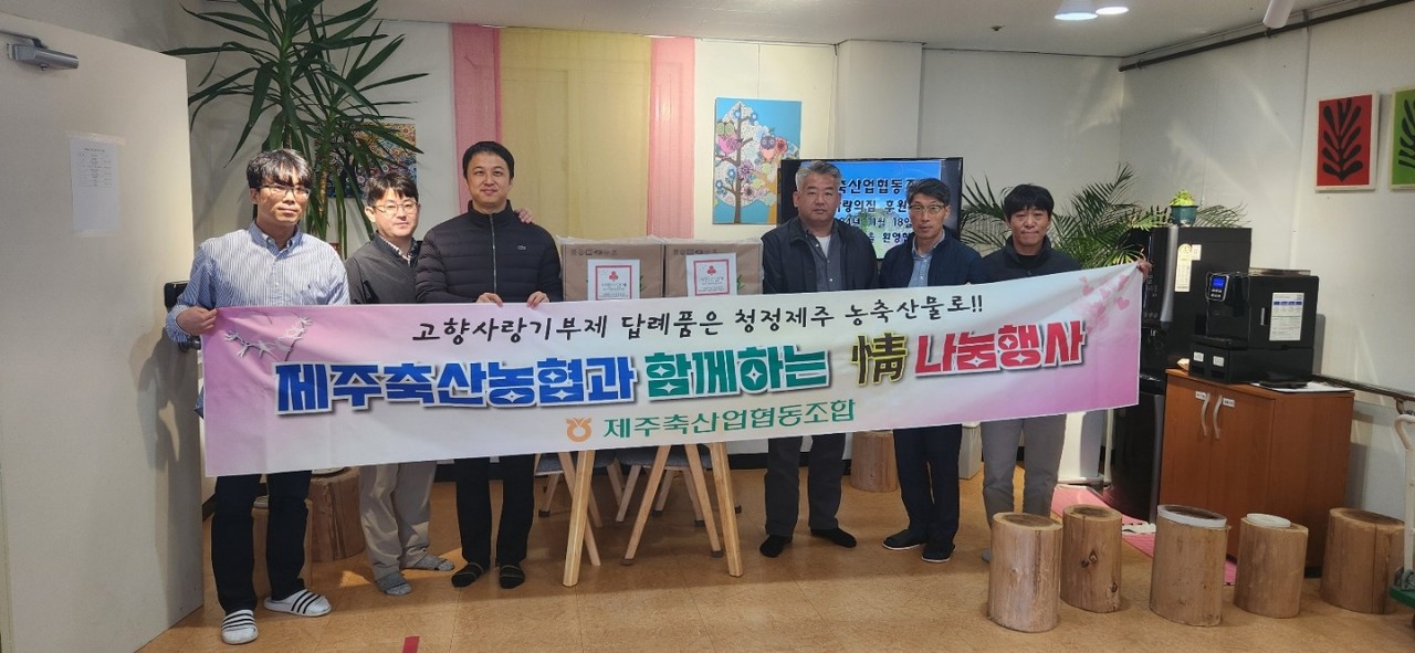 제주축산농협(조합장 천창수)은 지난 지난 18일 제주시 화북이동에 위치한 성심원 사랑의집을 방문하여‘情 나눔행사’를 실시했다.