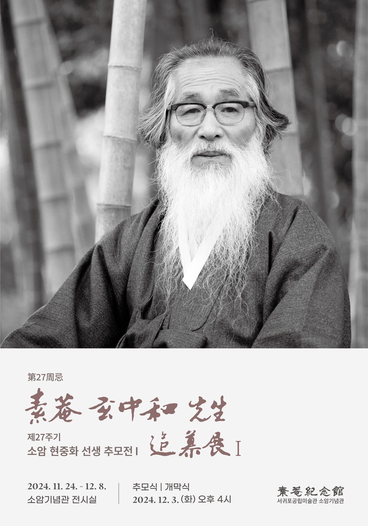 서귀포시 소암기념관이 소암 현중화 선생 영면 27주기를 맞아 '제27주기 소암 현중화 선생 추모전 1부'를 개최한다.