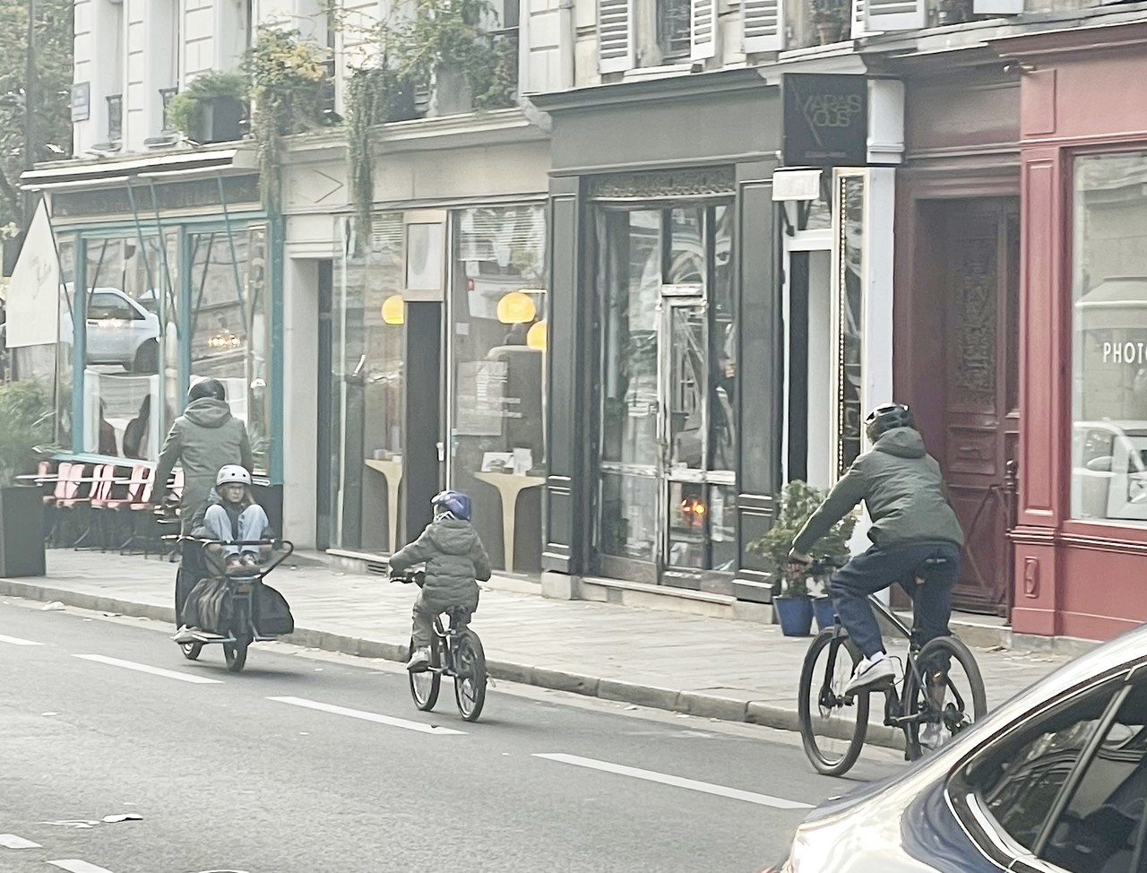 파리 시내 곳곳에서는 이 정책의 흔적을 쉽게 찾아볼 수 있었다. 4차선 이상의 넓은 도로는 찾아보기 쉽지 않았다. 자전거 전용도로는 새로 설치하는 개념이 아니라 기존 차도와 공유하는 방식으로 거리를 디자인했다.