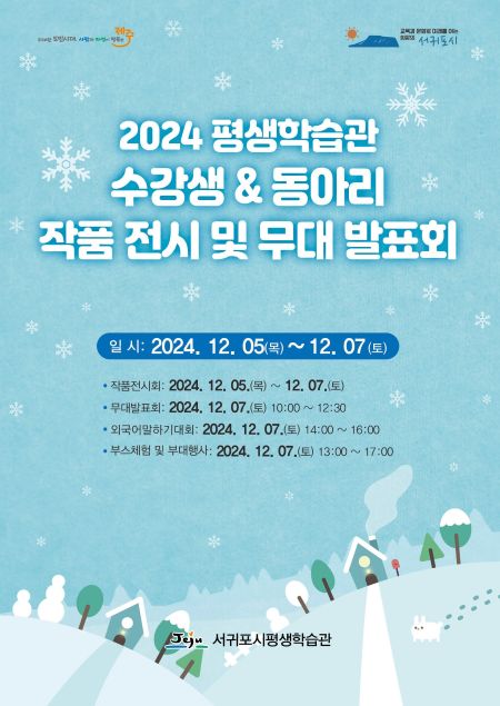 서귀포시는 오는 5일부터 7일까지 서귀포시 평생학습관에서 2024년도 수강생 작품전시회 및 무대 발표회’를 개최한다고 밝혔다.