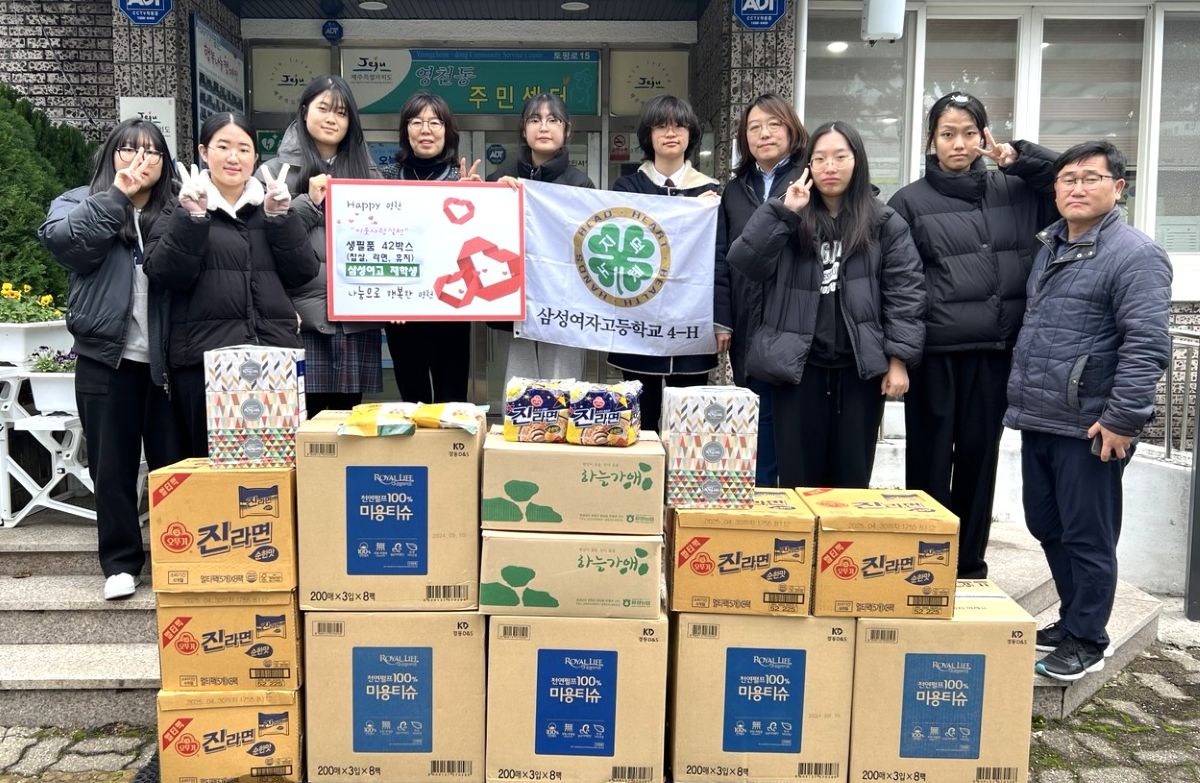 삼성여자고등학교(교장 고성혁)는 지난 11월 29일 데메테르4-H 동아리에서 영천동 주민센터를 찾아 혼자 사는 지역 어르신들에게 찹쌀, 라면과 화장지 42Box를 기부했다고 밝혔다.