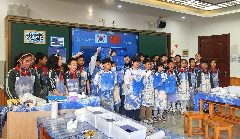 지난 3일 중국 난징시 금릉중학교 하서분교 초등부를 직접 방문해 초청 공연 관람을 하고 넥타이 염색 체험 및 음악 수업 활동 등 중국 학생들과 함께 수업에 참여했다.