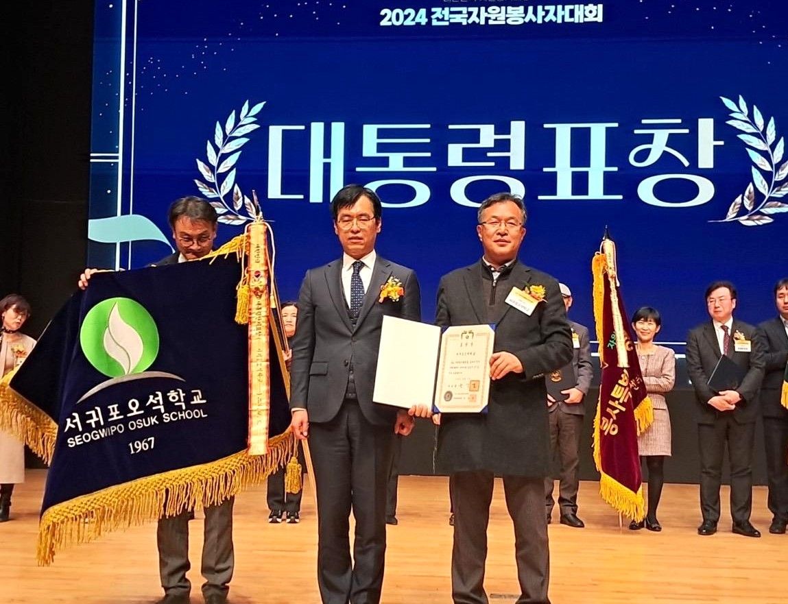 서귀포시는 서귀포 오석학교(교장 오영진)가 지난 5일 행안부 주최 2024년 대한민국 자원봉사 대상 공모 국민추천 단체부문에서 대통령 표창을 수상했다고 9일 밝혔다.