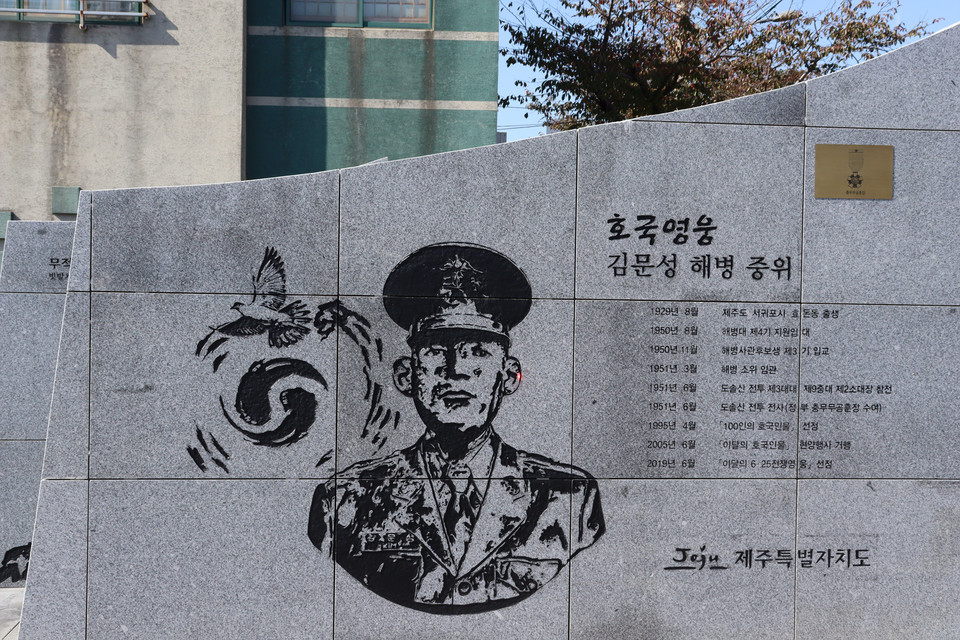 '호국영웅 김문성로'는 6·25전쟁 당시 중동부 전선 핵심 요충지인 도솔산 지구 탈환에 결정적 역할을 했던 제주 출신 故 김문성 중위의 희생을 기리기 위해 2019년 지정됐다.