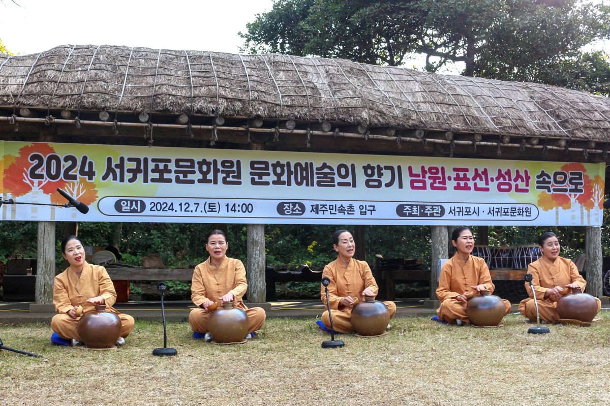 서귀포문화원(원장 양병식)은 지난 7일 제주민속촌과 8일 송악산 잔디광장에서 찾아가는 공연 ‘문화예술의 향기 남원·표선·성산/안덕·대정 속으로’를 마무리했다고 밝혔다.