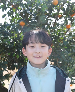 가족여행으로 서귀포 감귤박물관을 찾은 11살 홍윤찬군은 기자의 질문에 쑥스럽게 미소지었다.