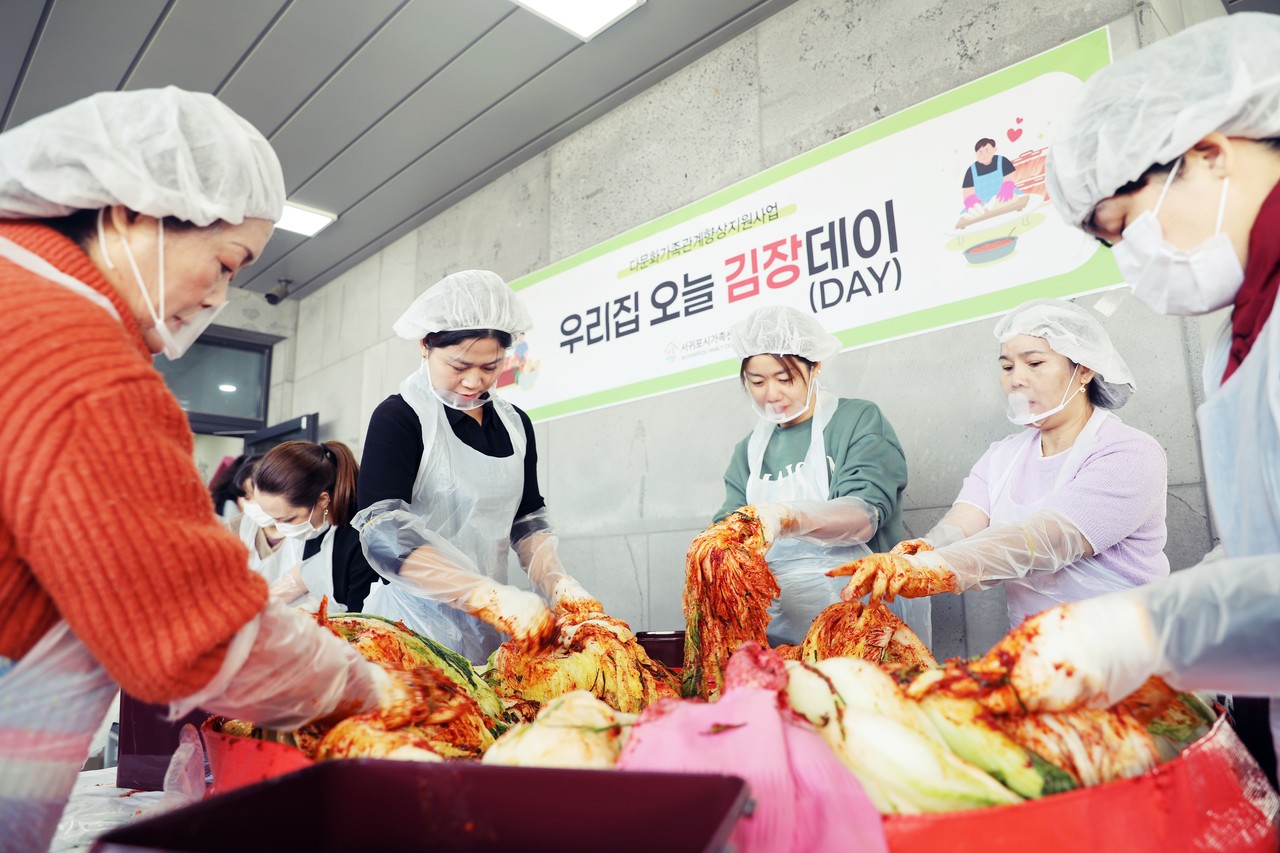 서귀포시가족센터는 지난 12일 서귀포시가족센터에서 다문화가정 20가구가 참여한 가운데 ‘우리집 오늘은 김장한 데이(Day)’프로그램을 운영했다. 김장김치 400포기를 담궈 서귀포 지역 다문화가정 200가구에게 전달했다.