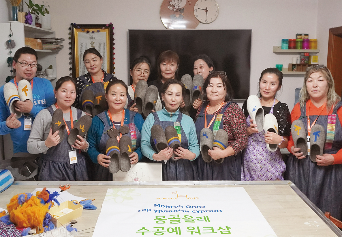 이번 펀딩에서는 특히 몽골 여성 주민들이 만든 100% 양모 핸드메이드 슬리퍼도 선보인다. 슬리퍼의 주재료인 양모 천 제작부터 모든 공정 과정은 기계의 도움 없이 수작업으로 이뤄진다.