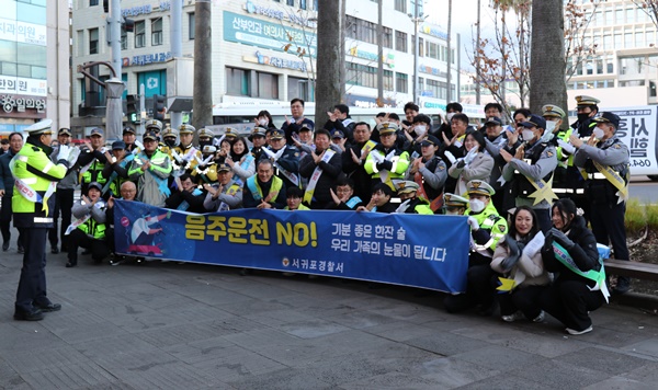 서귀포경찰서(서장 오훈)가 연말연시를 맞아 시청 등 유관기관과 경찰발전위원회 등 협력단체와 함께 대대적인 음주운전 근절 캠페인을 펼쳤다.