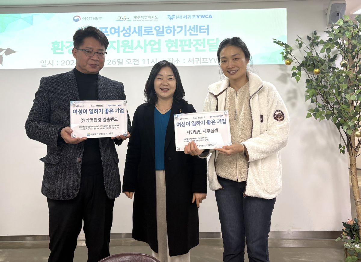 서귀포여성새로일하기센터(센터장 이신선)는 지난 26일 (사)서귀포YWCA회관에서 채용기업 사후관리 환경개선 지원사업 현판전달식을 진행했다고 밝혔다.