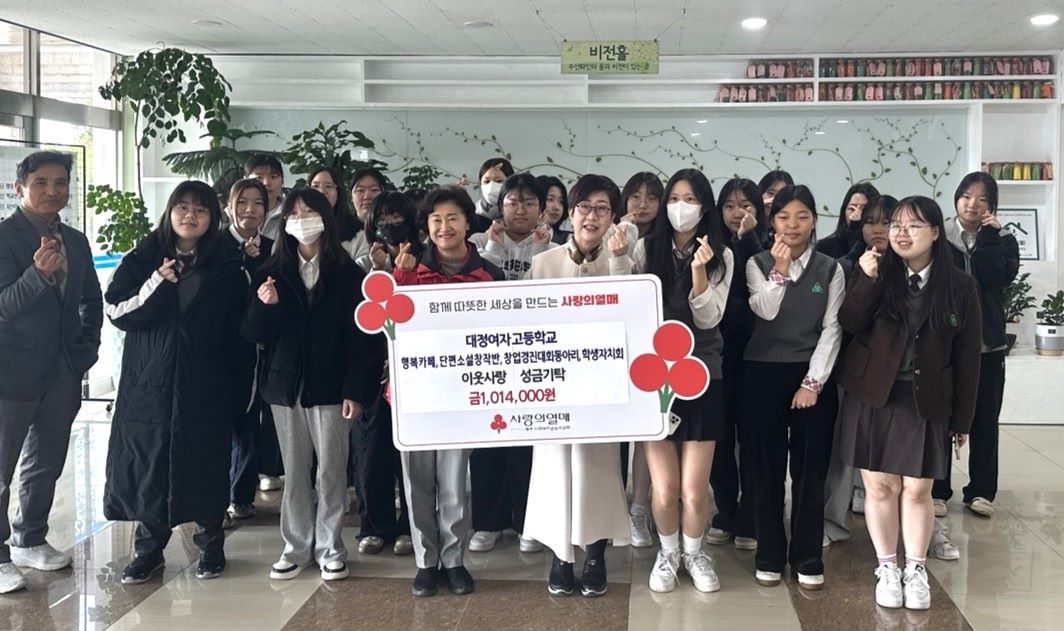대정여자고등학교(교장 서자양)는 지난 2일 학교 본관 비전홀에서 ‘착하단 프로젝트’의 일환으로 2024년 학생 교육활동 수익금 101만4000원을 모아 사랑의 열매에 전달했다.