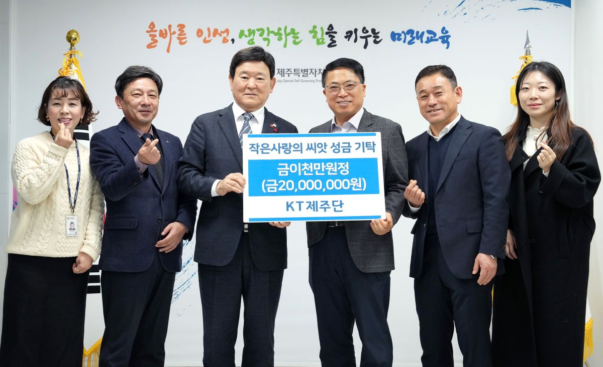제주특별자치도교육청은 KT제주단(단장 김장수)이 어려운 도내 학생들의 교육활동을 지원하기 위해‘작은 사랑의 씨앗’성금 2천만원을 기탁했다고 16일 밝혔다.