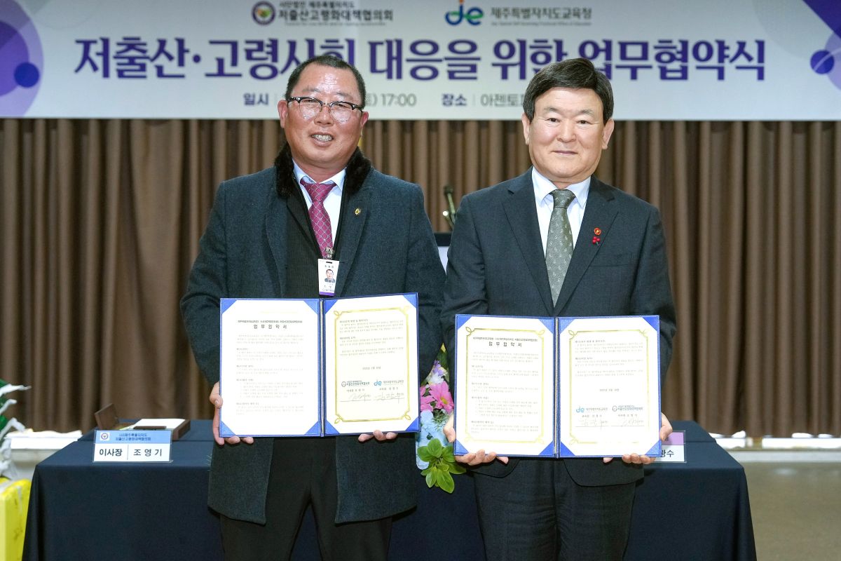 제주특별자치도교육청은 지난 18일 (사)제주특별자치도 저출산고령화대책협의회(이사장 조영기)와 제주 시내 호텔에서 저출생·고령사회 유기적 대응 및 협력을 위한 업무협약을 체결했다고 밝혔다.