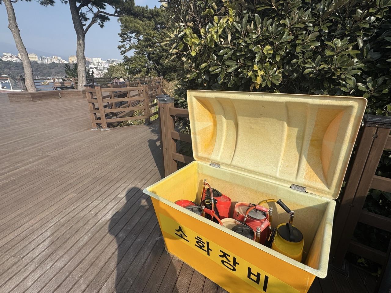 서귀포시는 화재 발생시 산불진화차 및 소방차량 진입불가로 초기진화가 어려운 산불취약지 새섬과 서건도에 일반인도 쉽게 사용할 수 있는 산불진화장비(2곳, 등짐펌프 25개, 소화기 5개)를 배치한다.