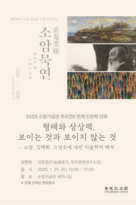 서귀포공립미술관 소암기념관에서는 2025년 첫 번째 인문학 강좌로 오는 25일 ‘형태와 상상력, 보이는 것과 보이지 않는 것’이라는 주제로 강의를 개최한다.
