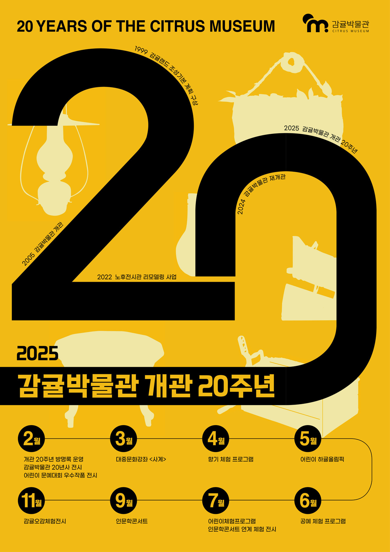 2005년 문을 연 감귤박물관은 ‘감귤박물관 20년, 역사를 담아, 미래로 피어나다’를 슬로건으로, 2월부터 12월까지 전시와 체험 프로그램, 문화행사를 개최할 예정이다.