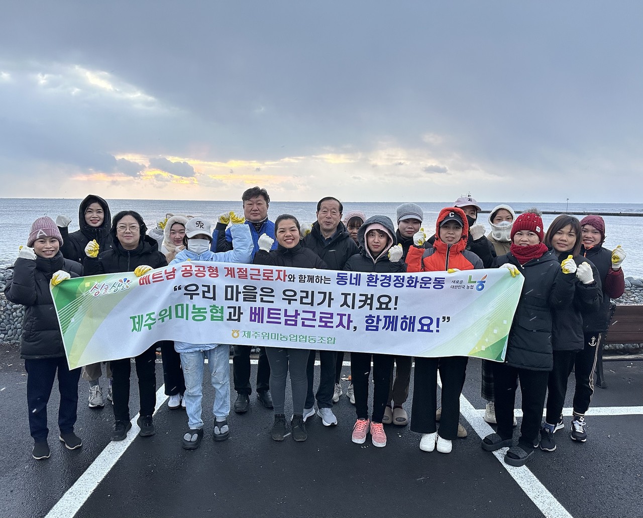 제주위미농협(조합장 현재근)은 지난 1월 28일, 베트남 공공형 계절근로자들이 참여해 남원읍 공천포 일대에서 환경정화 봉사활동을 진행했다.