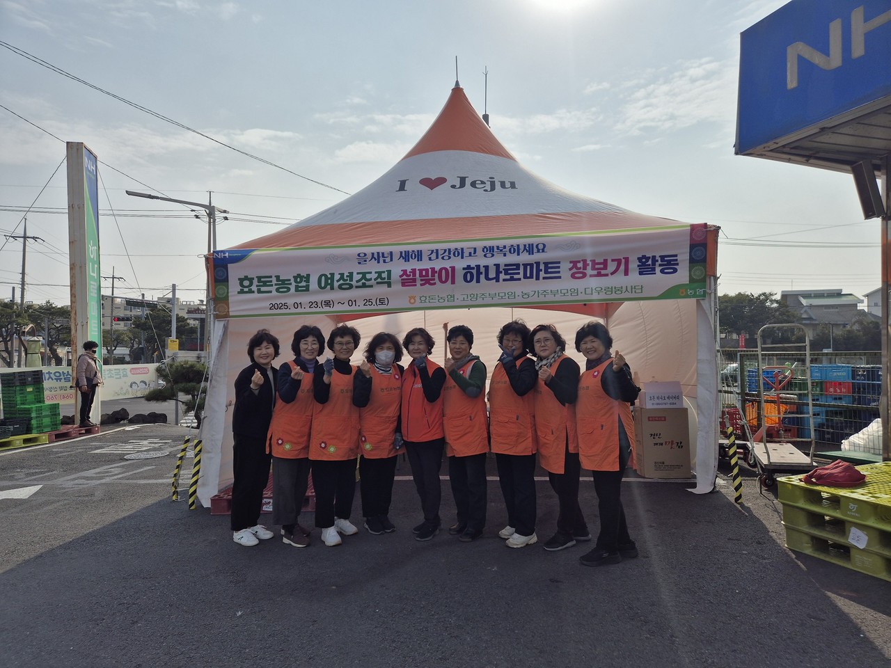 효돈농협(조합장 백성익) 여성조직(고향주부모임,농가주부모임,다우렁봉사단) 140여명과 임직원은 지난 1월 23일 부터 25일까지 효돈농협 하나로마트에서 설맞이 차례상 장보기 봉사 활동을 진행했다.
