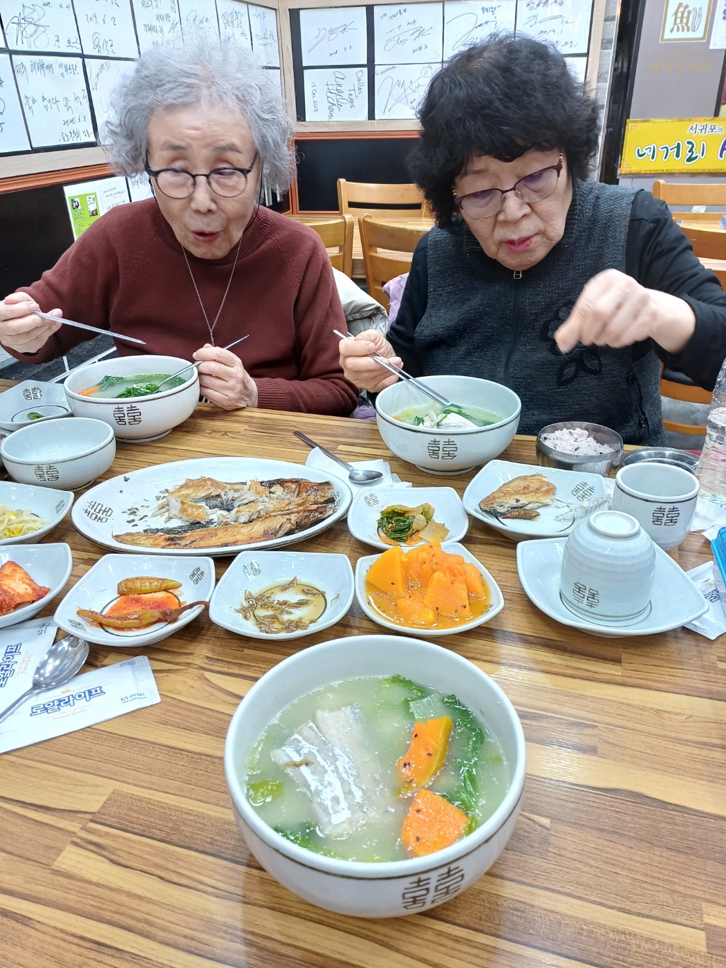 김군자씨는 “선생님께서 4년 전에 서귀포에 오셔서 갈치국을 드셔보셨는데 너무 맛있다고 하셔서 이번에 그 식당에 갔는데 너무 맛있었다”라고 말했다.