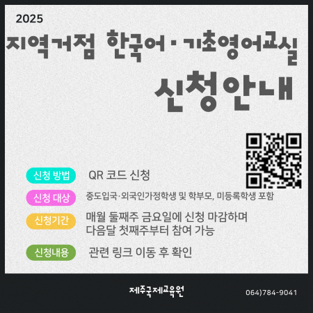 홍보물의 QR코드를 통해 간편하게 신청할 수 있으며 보다 자세한 사항은 제주다문화교육센터(064-784-9041)로 문의하면 된다.