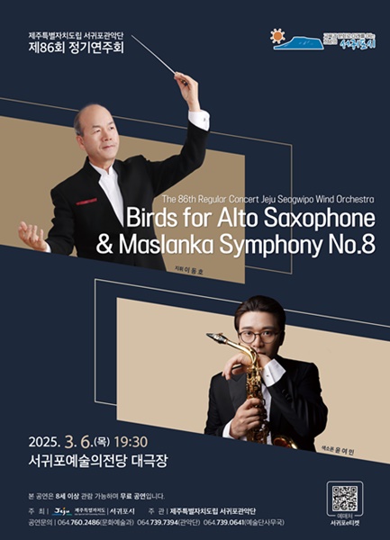 서귀포시는 오는 3월 6일 19시 30분 서귀포예술의전당 대극장에서 '제주특별자치도립 서귀포관악단 제86회 정기연주회'를 개최한다.