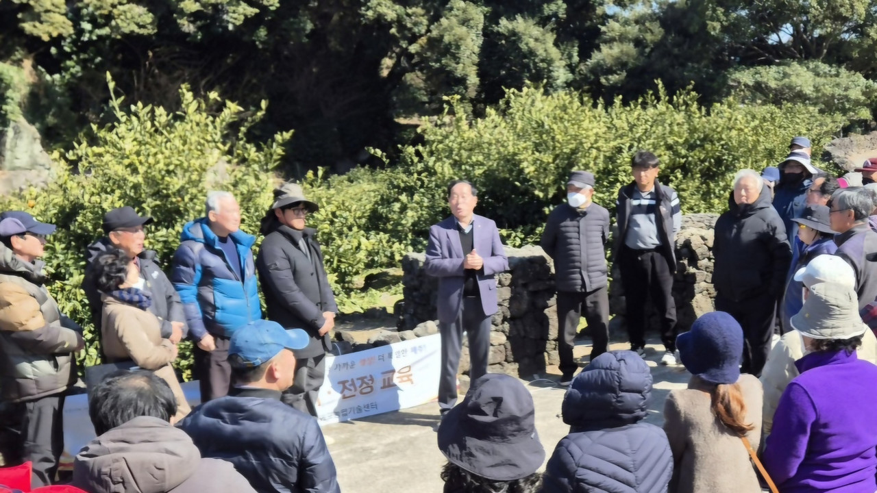 제주위미농협(조합장 현재근)은 지난 24일 서귀포농업기술센터(소장 양창희)에서 서귀포농업기술센터 주관으로 고품질 노지감귤 생산을 위한 정지전정 현장교육을 실시했다.