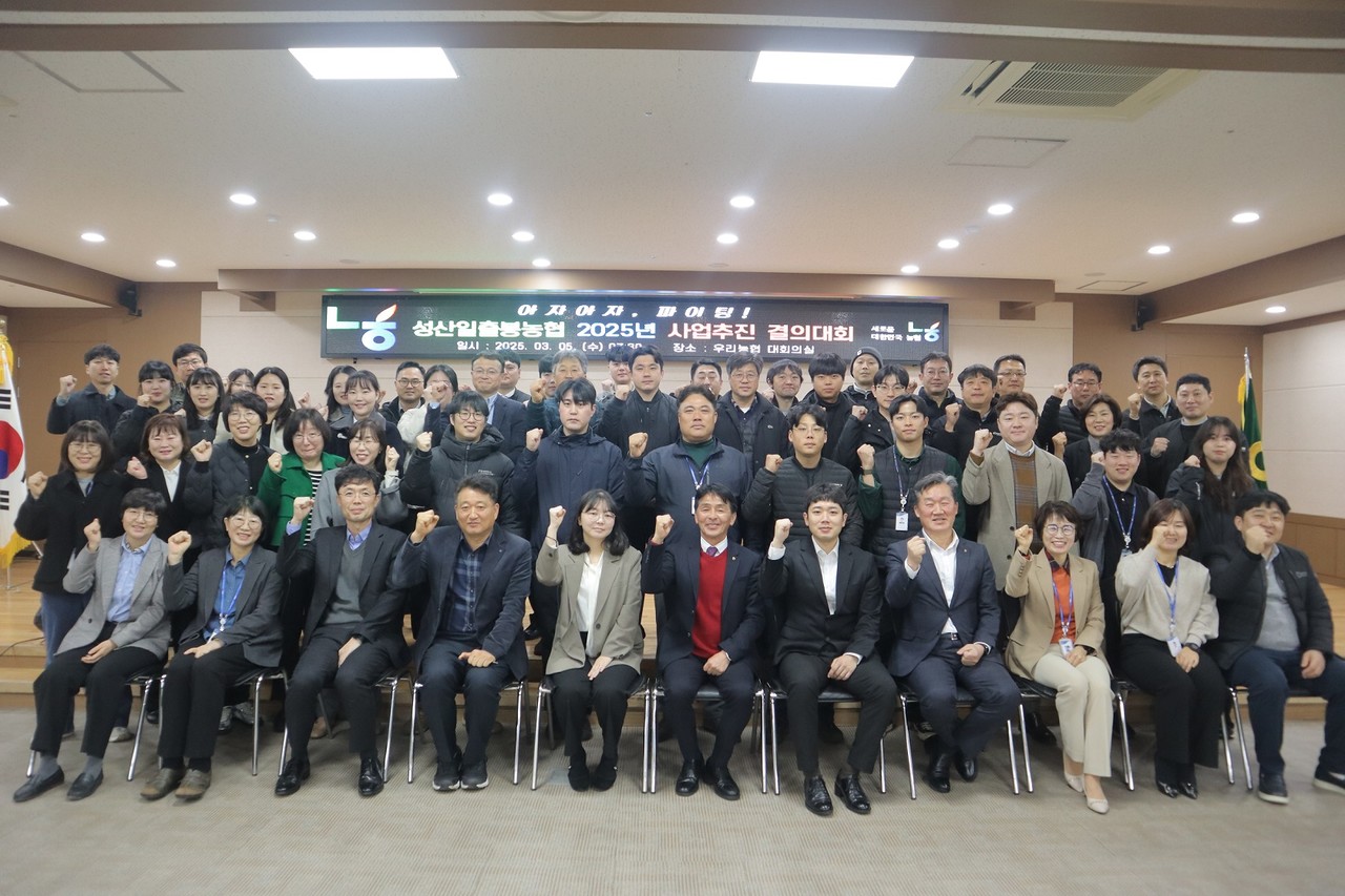 성산일출봉농협(조합장 박명종)은 지난 5일 본점 대회의실에서 임직원 120여명이 참석한 가운데 2025년 사업추진 결의대회를 개최했다.