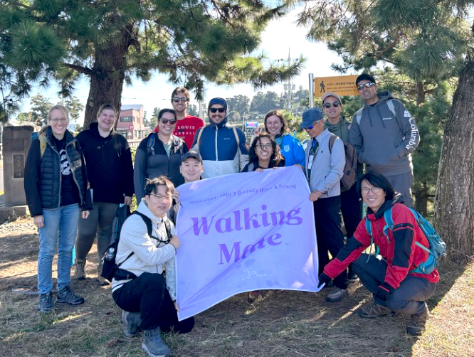 워킹메이트(Walking Mate)란 영어, 중국어, 일본어 등 외국어로 소통할 수 있는 자원봉사자들이 외국인과 함께 제주올레 길을 걸으며 제주의 자연과 지역 문화를 소개하는 무료 가이드 프로그램이다. 2023년 4월부터 운영된 이 프로그램은 지난 2년 간 총 65회 진행되었으며 영국, 미국, 중국, 싱가포르, 대만, 스페인, 프랑스, 일본 등 총 29개국에서 330여 명의 다양한 외국인 도보 여행자가 참여했다. ‘현지인 친구와 함께 걸으며 진짜 제주를 경험할 수 있는 시간’이라는 호평과 함께 ‘다시 제주를 찾는다면 제주올레 코스를 전부 걸어보고 싶다’는 긍정적인 평가를 받았다.