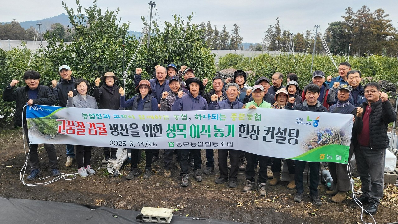 중문농협(조합장 김성범)은 지난 11일 성목이식 농가를 대상으로 맞춤형 현장컨설팅을 실시했다.