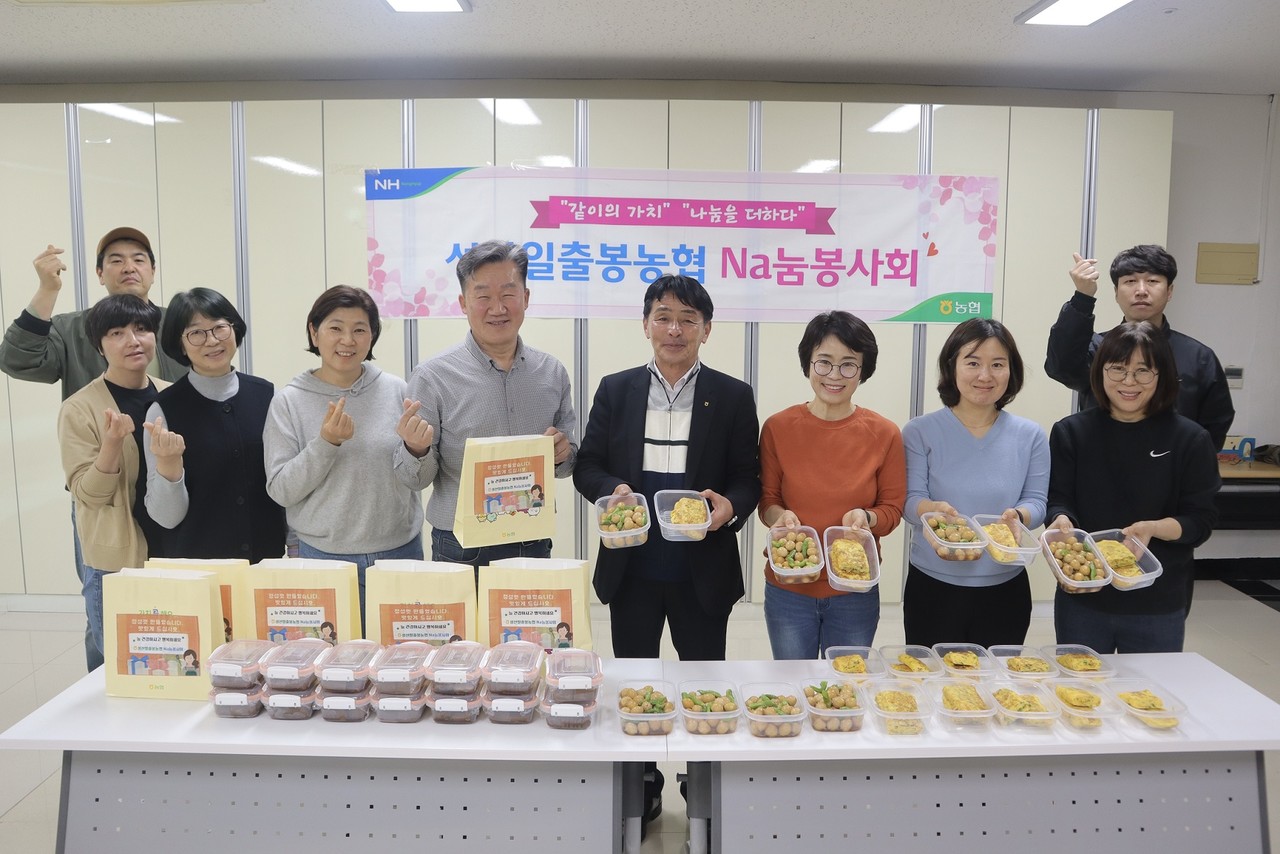 성산일출봉농협(조합장 박명종)임직원 봉사단체 Na눔봉사회(회장 김미정 상무)는 지난 15일 본점 행복모음센터에서 회원 13명과 함께 지역 어르신들을 위한 밑반찬 나눔봉사를 실시했다.