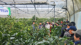 제주남원농협(조합장 고일학)은 지난 18일 서귀포시 수망리에 위치한 김용환 농가 과원에서 천혜향 재배기술 교육을 개최했다.