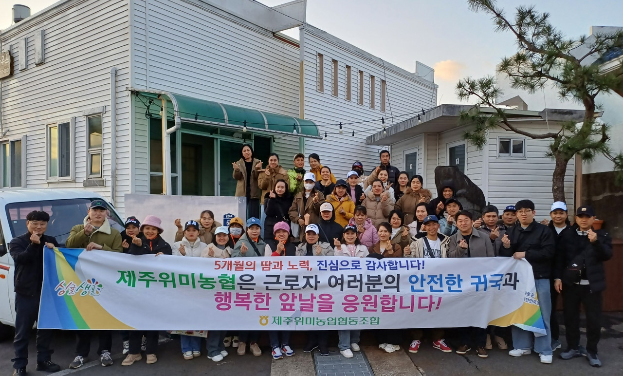 베트남 근로자들은 지난해 제주위미농협이 공공형 계절근로사업을 통해 확보한 인력으로, 감귤 수확 및 농작업 지원에 투입되어 지역 농가의 인력난 해소에 크게 기여했다.