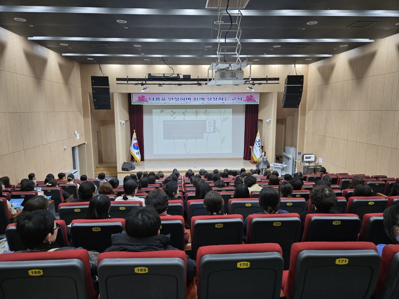 이번 교육은 '다름을 인정하며 함께 성장하는 교사'라는 주제로 마음그루아동가족상담연구소 박미리 소장이 강의를 맡았다.