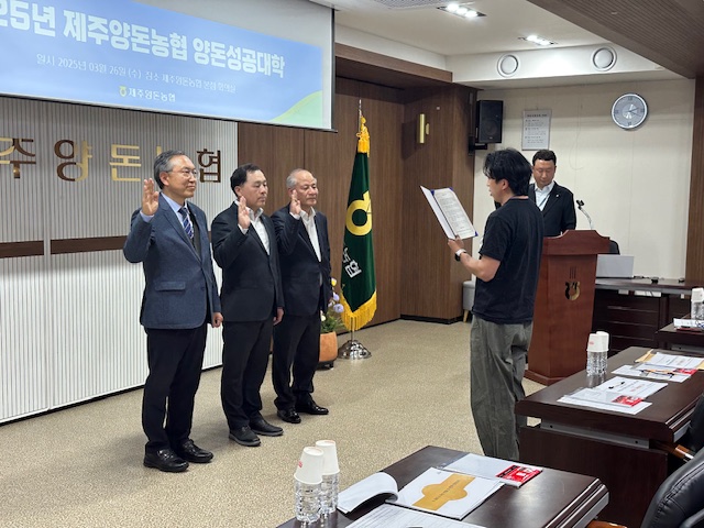 제주양돈농협(조합장 고권진)은 지난 26일 제주양돈농협 본점 대회의실에서 교육생 및 임직원 40여 명이 참석해 2025년 제주양돈농협 제3기 양돈성공대학 개강식을 개최하고 교육에 들어갔다.